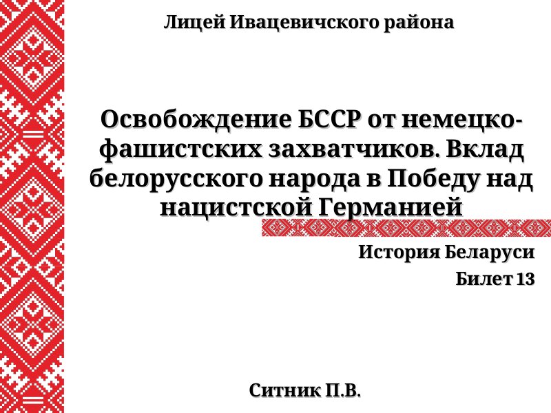 Презентация По Истории Беларуси 9 Класс § 16. Освобождение Бсср От Германских Захватчиков. Вклад Белорусского Народа В Победу Над Наци